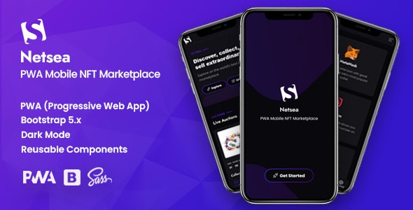 Netsea – PWA Mobile NFT Marketplace is a Progressive Web App. You can add it to your homescreen & use it like a regular app. It is a new method of payment on the Internet using electronic currency. Each of the NFTs is unique and exists in a single copy, it cannot be divided and all information about its author, buyer and all transactions with it is securely stored in the blockchain. Netsea is a dedicated PWA Template for NFTs shops and NFT assets stores, crypto Art markets and for Digital assets biding websites. It is very nicely designed with modern features & coded with the latest technology.
