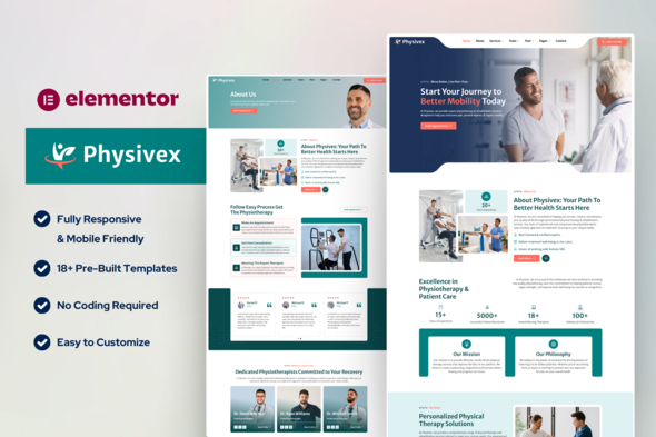 Physivex is a professionally designed website template specifically crafted for physical therapy clinics, physiotherapists, rehabilitation centers, and wellness professionals. Built with Elementor, this template kit offers a modern, user-friendly layout with a clean and responsive design.