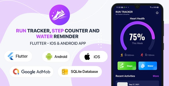 Run Tracker, Step Counter and Water Reminder – Flutter Android iOS App (40 Languages)