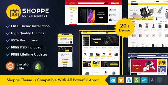 Included 5+ Layouts with Unlimited Possibilities [50% OFF] Shoppe eCommerce Shopify Multipurpose Responsive Theme is specialized for Mega Stores, Layout, Electronics, Fashion, Auto, Automotive, Tools, Parts, Furniture, Art, Home, Decor, Crafts, Gift, Flowers, Organic, Grocery, Wine, Bakery, Food, Gusto, Drinks, Mega, Lingerie, Beauty, Cosmetics, Jewelry, Accessories, Clothes, Blog, Accessories, eCommerce, Web, Templates, Minimal and multipurpose store. Shoppe Theme Layouts are looking good with its colors combination, Included 05+ different best Layouts. It is very clean and looks professional. Purchase Best of Shopify Theme with Mega Features and Low Price Guaranteed.