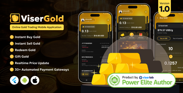 ViserGold is the first-ever live gold trading mobile app on CodeCanyon, offering a seamless digital experience for buying and selling gold at current market prices. Users can redeem gold or gift real gold coins and bars to their loved ones. Our mobile app provides real-time trading features — no gimmicks or false promises. With ViserGold, there’s no need to spend thousands on developers to build your gold trading business mobile app. Our system handles unlimited gold stock, users, automated payments, invoices, billing, and gifting options, including branded bars. Accept payments through traditional gateways and automated card top-ups. Our ready-to-go solution lets you set up your mobile app in minutes. Plus, we offer top-notch support, installation, and customization services. Don’t wait—get your copy and launch your live gold trading app today!